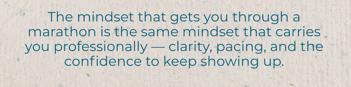 A meaningful part of my coaching also includes supporting women preparing for their first marathon — not as athletes, but as people committing to something important for themselves. Training for a marathon mirrors many aspects of personal and professional growth: navigating doubt, pacing yourself, holding a long-term goal, and showing up through the messy, uncertain parts of life.
